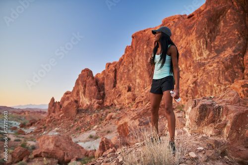 adventure, african american, backpack, us, nevada, desert, exploration, healthy lifestyle, hiking, hiker, athletic, landscape, activity, female, fitness, girl, lifestyle, national park, nature, outdoors, person, recreation, red, rock, standing, state park, sunlight, travel, vacation, woman, young adult