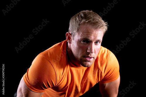 people, active, athletic, athlete, sportsman, muscular, exercise, fit, fitness, development, improvement, progress, achievement, flexibility, flexible, health, healthy, physical, shape, lifestyle, sport, sport, activewear, sporty, train, training, physical exercise, working out, resting, perspiring, perspiration, perspiring, sweating, leaning, real people, black background, cut-out, isolated, authentic