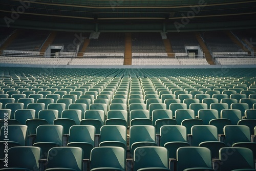 Atmospheric image depicting rows of empty green seats in a large stadium awaiting an audience