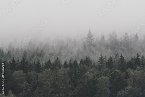 fog, mist, forest, tree, nature, landscape, moody, atmospheric, dark, mysterious, serene, tranquil, cold, wilderness, pine, conifer, evergreen, grey, background, wallpaper, travel, adventure, scenic, view, environment, eco, cloud, sky, overcast, morning, hill, texture, minimal, abstract, natural, mountain, wood, dramatic, dense, canopy, stock, photo, summer