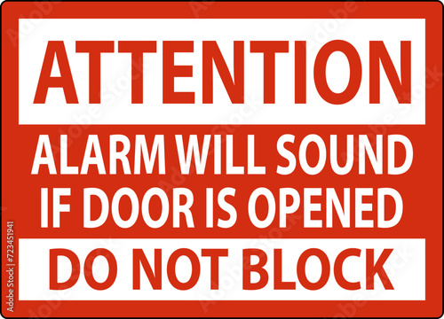 Attention Sign, Fire Door Alarm Will Sound If Door Is Opened Do Not Block