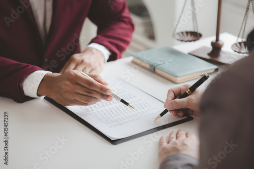 Attorneys advising in cases where a client has been defrauded by a defendant who is a business partner forming a joint company, advising on litigation and gathering evidence. Fraud case concept.