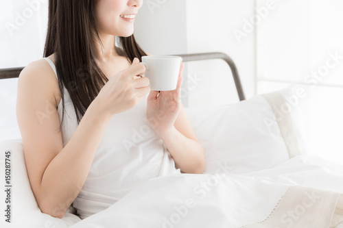 woman, people, bed, bedchamber, cosmetic, health, beauty, coffee, tee, mug, cup, drink, morning, awakening, live, lifestyle, camisole, smile, beauty, white, young, appealing, japanese, asian, portrait, alone, waist up