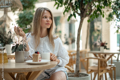 adult, girl, attractive, background, beautiful, beauty, beverage, breakfast, cafes, cake, calm, caucasian, close, closeup, cup, cute, drink, drinking, enjoy, enjoying, female, food, good, happy, holding, hot, lifestyle, looking, lunch, morning, people, person, pretty, relaxation, eatery, smile, smiling, summer, table, tea, using, woman, woman, young, vegan