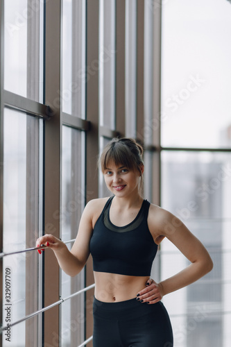 attractive girl in the gym during yoga and fly yoga, posing and looking good