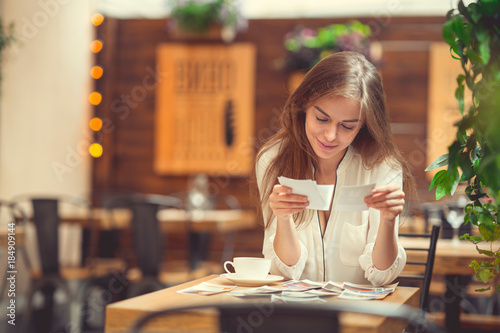beautiful, cafes, card, concept, drink, female, girl, person, eatery, woman, cup, hot drink, tea, adult, young, people, pleasure, photo, picture