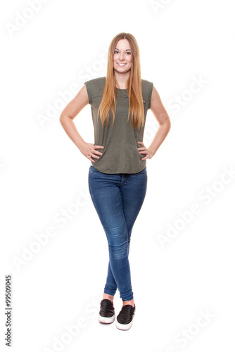 attractive woman, casual clothes, caucasian, full-length, isolated on white, one person, standing, teenage girl, teenage, white background, woman, young adult, missy, youth culture
