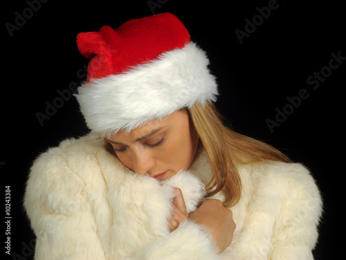 Attraktive Frau mit Pelz und Weihnachtsmannmütze