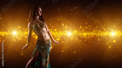 attraktive orientalische Tänzerin vor Lichterhintergrund