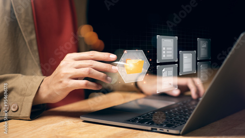 Auditor worker working with document folder ,Management of important document storage of organization ,ERP document system ,quality assessment management With a checklist ,online document database