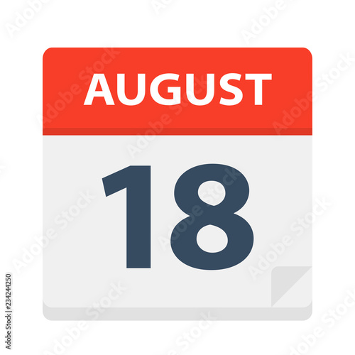 august, 18, calendar, icon, vector, illustration, date, day, isolated, rounded, month, page, flat, red, grey, white, background, isolated on white, organiser, plan, schedule, time, today, template, square, leaf, paper, 2018, 2019, 2020, 2021, 2022