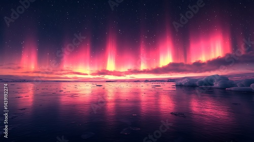 Aurora Borealis Lights Over Frozen Waters Under Starry Night Sky