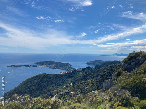outlook, far, sea, mediterranean sea, riviera, horizon, hike, mountain, rock, coast, bay, peninsula, yacht, blue, heaven, nature, vacation, distant