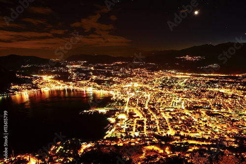 viewpoint, aerial view, skyline, night photography, lamp, port, spate, mouth, moon, moonlight
