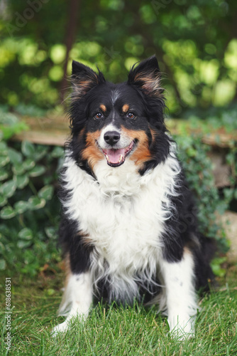 dog, pet, animal, canino, puppy, white, cute, black, portrait, mammal, breed, tongue, domestic, shepherd, grass, australian, purebred, garden, plant