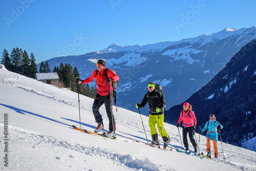 austria, tyrol, group, skier, ascending, snow-capped, slope, mountain, 4, people, sport, travel, adult, woman, man, rural, nature, adventure, alps, range, ski, pole, skiing, winter, hobby, escapism, pursuit, recreation, leisure, cross, country, mature, walking, season, snow, weather, caucasian, weekend, landscape, journey, vale, female, male