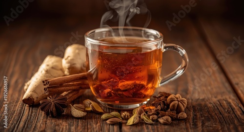Authentic Indian masala chai tea steeped in a fragrant blend of herbs and spices