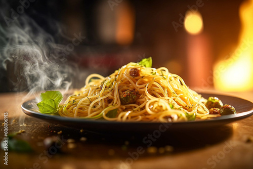 Authentic Spaghetti Aglio E Olio: A Delicious Italian Pasta Dish. Generative AI