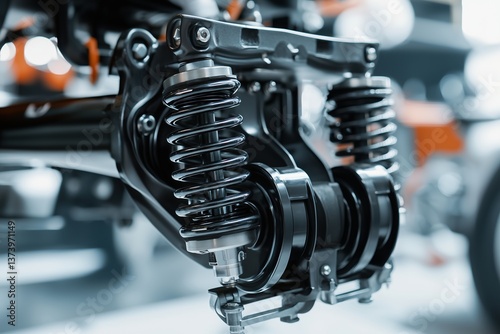Auto car repair service center. Mechanic examining car suspension