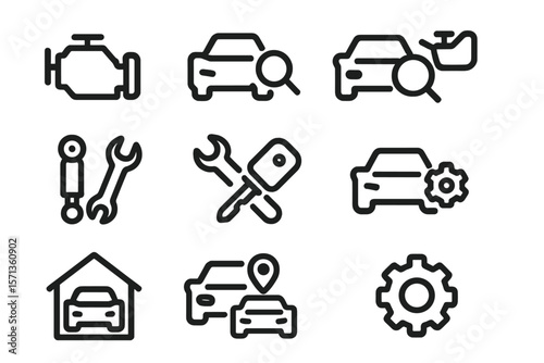 car, repair, tool, engine, service, maintenance, icon, garage, symbol, automotive, wrench, gear, mechanical, vehicle, transportation, auto, diagnostic, inspection, flat, modern, outlined, set, collection, monochrome, part, equipment, silhouette
