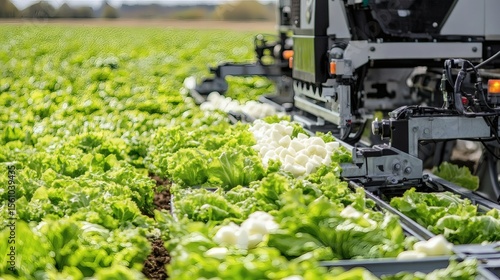 field, lettuce, green, fresh, harvest, machine, agriculture, technology, food, farming, plant, crop, growth, produce, automation, industrial, cutting, processing, vegetable, row, garden, operation, cultivation, vegetation, farm, modern, equipment, mechanical, picking, automated, efficiency, outdoors, day, daylight, sunny, light, bright, nature, ecosystem, environment, sustainable, natural, closeup, detail