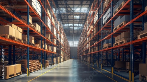 Automated high-rack warehouse, showcasing modern industrial storage solutions.