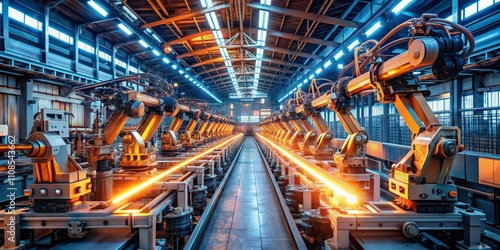 digital, power, flow, robotic, arm, efficiency, conveyer, motor, intelligence, automated, pneumatic, system, technology, welding, casting, hot, manufacturing, transformation, molten, steel, industrial, mechanic, durability, machinery, innovation, energy, hydraulic, line, strength, ai, smart, factory, optimization, control, process, mill, heat, engineering, spark, precision, metal