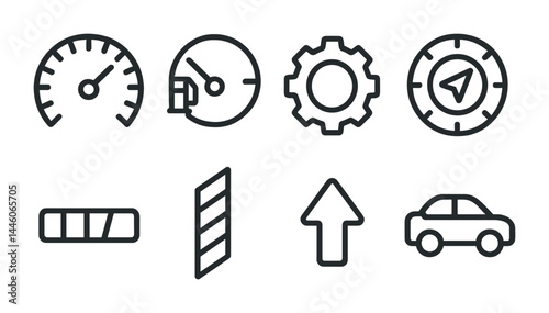 automotive, linear, outline, speedo, navigation, car, transport, vector, icon, set, functional, elegant, direction, mechanism, map, journey, road