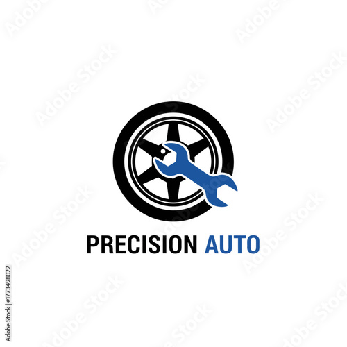 precision, auto, automotive, repair, service, mechanic, garage, workshop, maintenance, wheel, tire, tyre, rim, alloy, wrench, spanner, tool, equipment, technical, technician, expertise, professional, industrial, vehicle, car, truck, machine, motor, engine, part, spare, shop, business, corporate, logotype, icon, symbol, emblem, badge, illustration, graphic, design, black, blue, circle, round, speed, sport