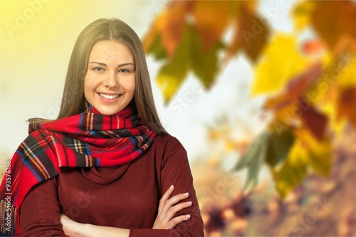 autumn, adult, attractive, background, beautiful, beauty, bright, caucasian, cheerful, coat, colours, cute, face, fall, fashion, female, foliage, forest, girl, gold, green, hair, happy, healthy, human, joy, lady, leaf, leisure, lifestyle