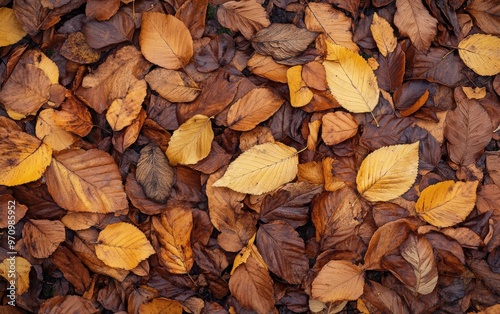 Autumn background texture. Leaves rainy clouds day.