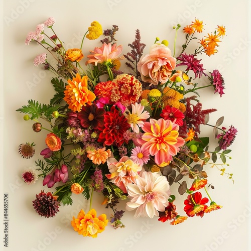 Autumn composition made of beautiful flowers on light backdrop, Flower Drawing