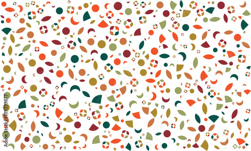 Autumn Geometric Abstract Pattern. Vibrant Fall Inspired Design with Leaves, Circles, and Floral Motifs in Warm Earth Tones. Perfect for Digital Art, Fabric Prints, Scrapbooking, and Seasonal Projects