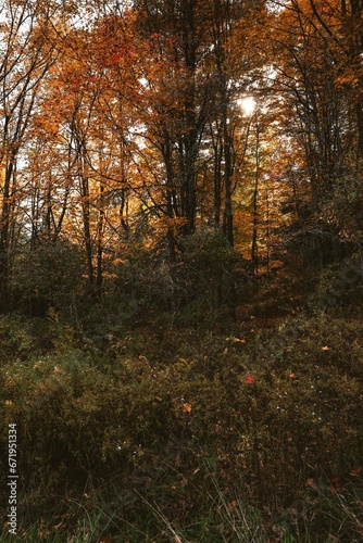 autumn, forest, fall, nature, tree, leaf, tree, landscape, foliage, season, yellow, wood, orange, leaf, outdoors, wood, gold, green, colourful, october, colours, sun, golden hour, background