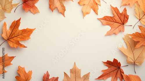 Autumn Leaves Arrangement on Neutral Background for Seasonal Decor