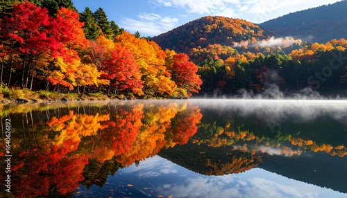 autumn, fall, leaf, lake, mountain, nature, landscape, calm, serene, peaceful, tranquil, water, foliage, season, colours, colourful, outdoors, scenic, beauty, vibrant, forest, tree, majestic, gold, red, orange, yellow, travel, hiking, wilderness, adventure, background, natural, environment, peacefulness, view, picturesque, still, blue, sky, daylight, photo, scenery, mood, quiet, untouched, clear, crisp
