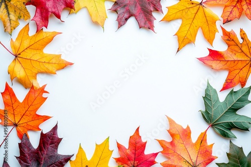 Autumn Maple Leaves Flat Lay White Background created with Generative AI