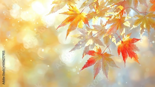 Autumn Maple Leaves in Soft Sunlight with Gentle Bokeh