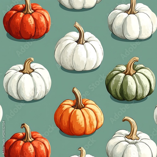 pumpkin, autumn, pattern, background, fall, harvest, design, texture, october, thanksgiving, vegetable, gourd, halloween, nature, food, illustration, colourful, seasonal, decorative, graphic, template, seamless, repeat, print, wallpaper, digital, art, image, squash, farm, cute