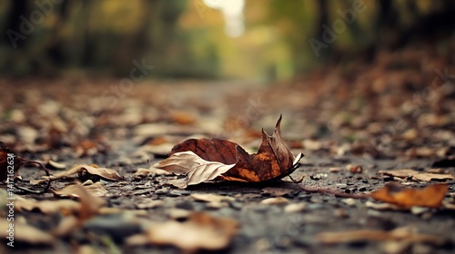 Autumn Scene Featuring Fallen Leaves on a Rustic Pathway Creating a Peaceful Seasonal Vibe in Nature : Generative AI