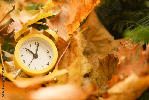 alarm, atmosphere, autumn, autumn, background, beautiful, change, clock, closeup, concept, copy, creative, creativity, fall, fallen, foliage, forest, gold, leaf, leaf, mood, natural, nature, november, object, october, outdoors, outside, park, saving, season, seasonal, september, space, start, text, ticking, time, vibe, waiting, weather, yellow