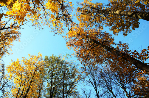 Autumn. Trees with red, yellow and green leaves against a blue sky