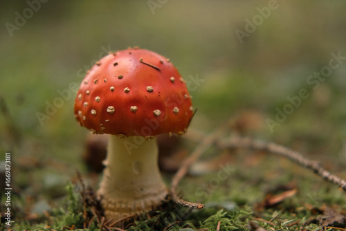 toadstool, danger, cap, stem, poison, mushroom, nature, autumn, magic, fly, biology, wood, spotted, growth, horizontal, seasonal, fairy tale, ground, timberland, no people, medicine, hat, grow, fairy, descriptive, daylight, alternative, forest floor, mottled, organism, substance, closeup, drug, fragility, plant, closeup, boletus, white, toxic, front view, rain, scale, gill, copy space, inedible
