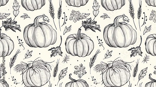 pumpkin, pattern, fall, leaf, harvest, autumn, gourd, vignetting, seasonal, illustration, vintage, art, nature, graphic, design, food, vegetable, stem, fruit, draw, ink, black, white, grey, background, hand-drawn, seamless, monochrome, abstract, artwork, texture, botanical, decorative, organic, floral