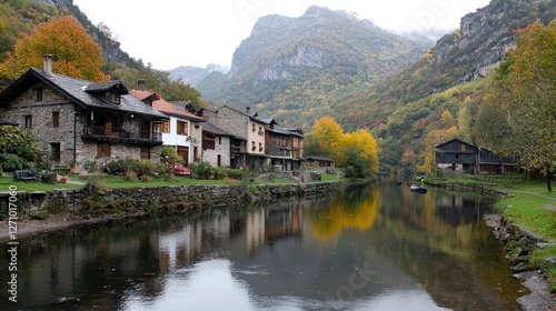 village, river, autumn, mountain, peaceful, scenic, travel, landscape, nature, vale, fall, foliage, tree, water, house, stone, calm, tranquil, serene, beauty, picturesque, idylli, charming, environment, background, image, photo, view, scenery, destination, tour tourism, holiday, vacation, journey, explore, discovery, adventure, relaxation, escape, get-away, countryside