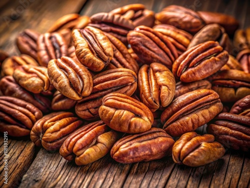 Autumn's harvest captured: a vintage still life of natural pecan nuts in their shells.