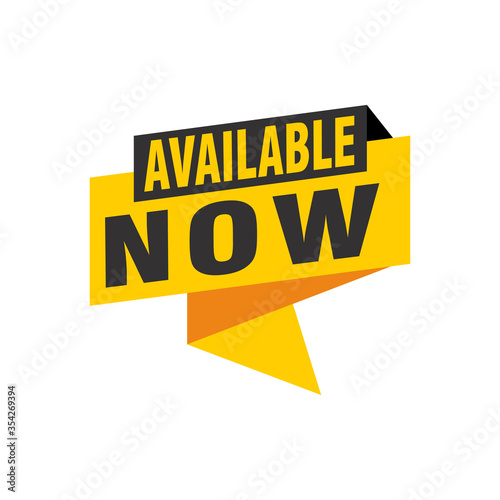 Available now label, badge, seal or burst flat vector icon for apps and websites