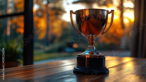 Awarded trophy on a wooden table