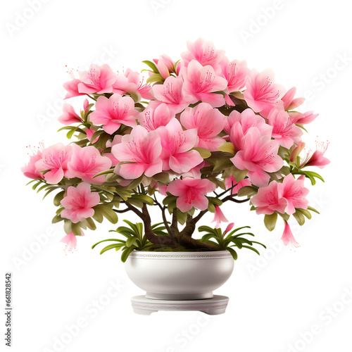 Azalea with Pink Blossoms in a White Pot Isolated on Transparent or White Background, PNG
