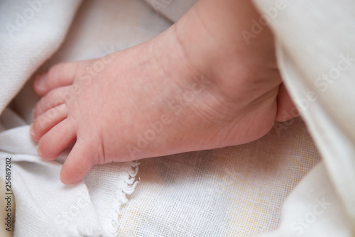 baby feet closeup on white background, newborn baby